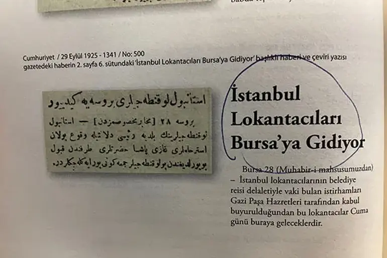 1925 yılında 22 Eylül ve 8 Ekim tarihleri arasında Bursa’da kalan Atatürk bir çok temasta bulunmuştur. 25 Eylül 1925 günü Cumhuriyet Gazetesi’nde Atatürk şerefine bir ziyafet yemeği verileceğinden, bu ziyafet yemeğini İstanbul’dan Bursa’ya gelecek olan lokantacıların hazırlayacağından bahseden bir haber yayımlanmıştır.