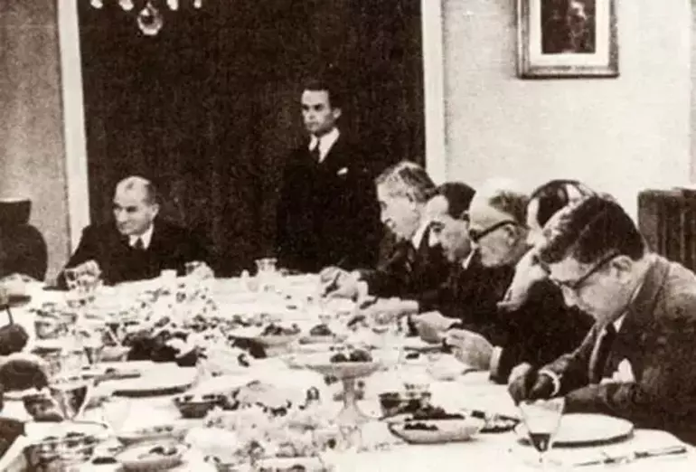 Tarihler 4 Ekim 1925’i gösterdiğinde ise aynı gazetede verilen ziyafet yemeği haber olmuştur. Tavuk çorbası, İstanbul usulü mayonezli levrek, mantarlı bezelyeli hindi palazı, dana fileto, soğuk bıldırcın dolması, kuşkonmaz, hasret tatlısı ve meyveden oluşan menü servis edilmiştir. Menüyü incelediğimizde; tavuk eti, levrek, hindi eti, bıldırcın eti ve dana etinin aynı sofrada servis edildiği dikkatimizi çekiyor.