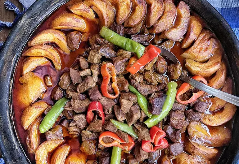 Soğanları ince bir şekilde kıyın. Üzerini geçecek kadar su ile ateşe alın. Su buharlaşıp soğanlar yumuşayıncaya kadar pişirin. Tereyağını ekleyin ve renk alana dek soğanları kavurun. Ardından yıkayıp süzdüğünüz eti tencereye ekleyin. Suyunu salıp çekinceye dek kavurmaya devam edin. Etin rengi değiştikten sonra üzerini geçecek kadar sıcak su ekleyerek pişmeye bırakın.